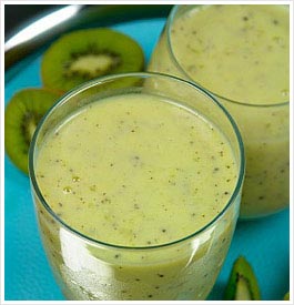 Combine all ingredients in a blender or food processor. Pour in a chilled glass and garnish with kiwi. Serve.